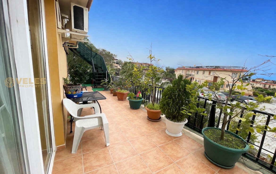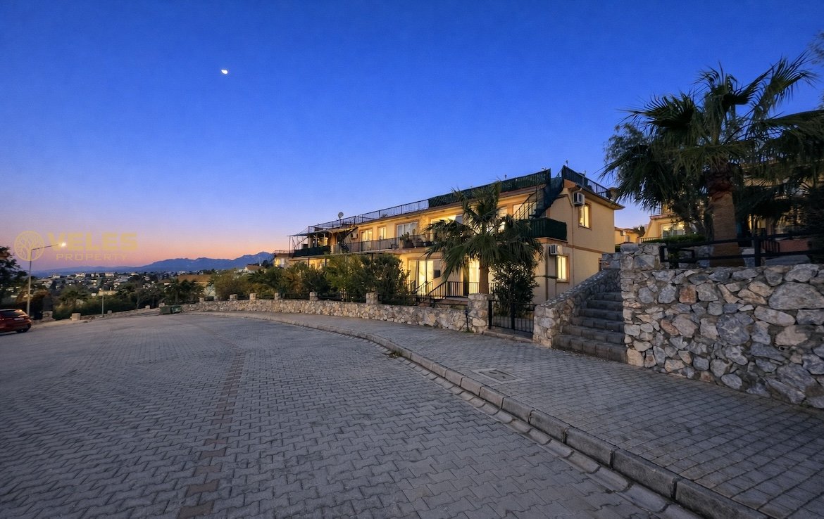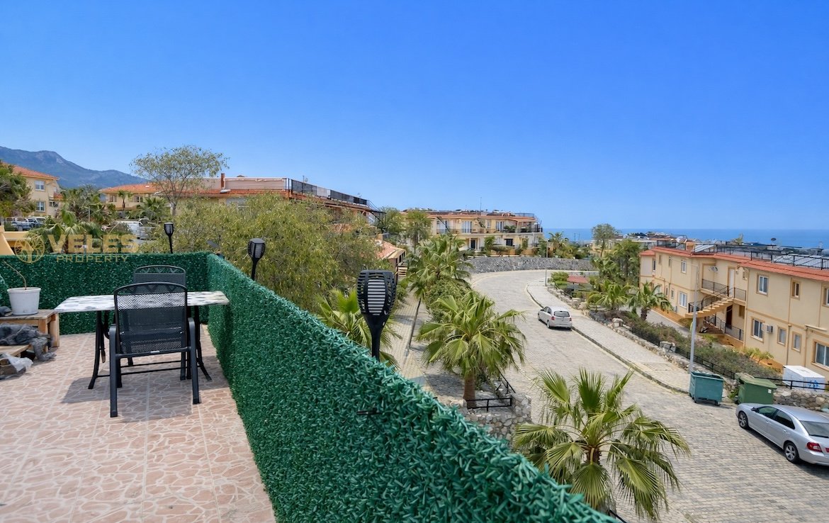 A 2+1 apartment with a sea view is available for sale in the Chelsey Village complex in Arapköy. This cozy apartment with a rooftop terrace is located in a gated community with controlled access. The windows and terrace offer beautiful views of the Mediterranean Sea and the mountains, creating a მშვიდ and comfortable living atmosphere.