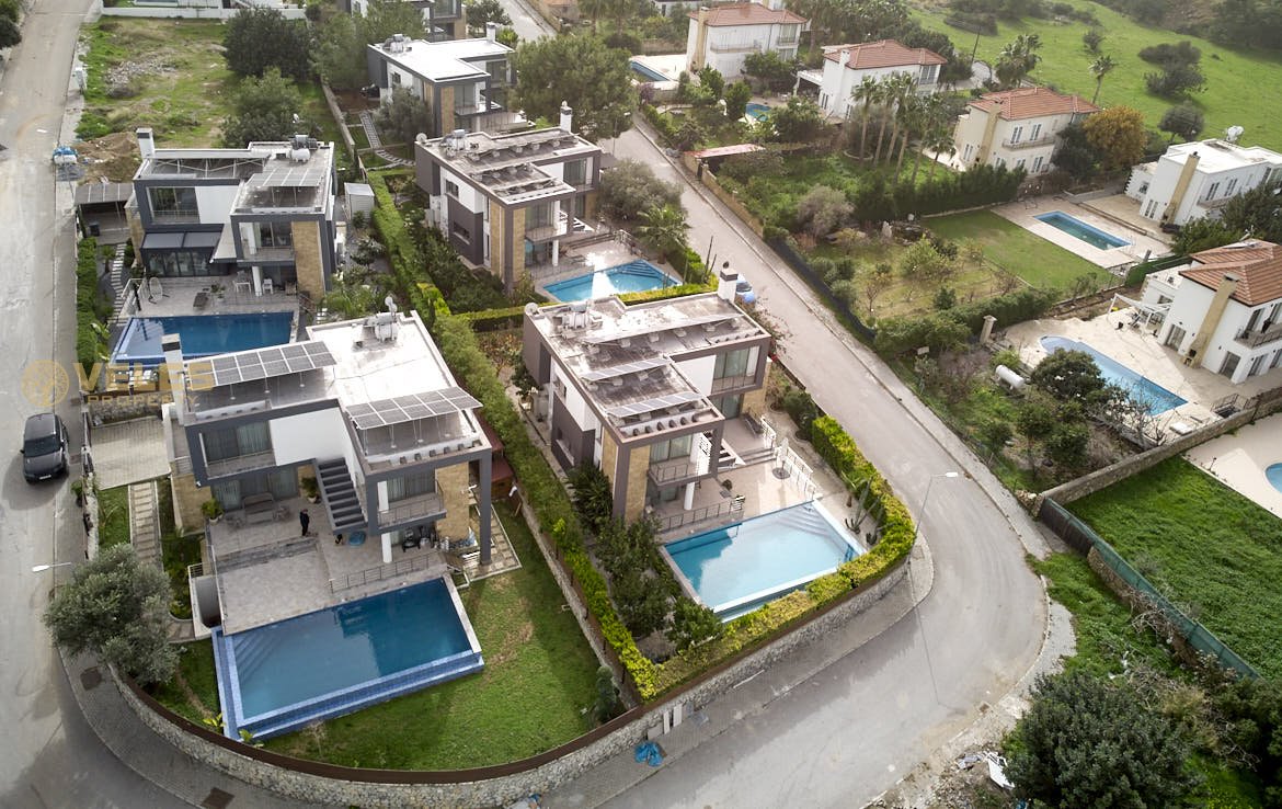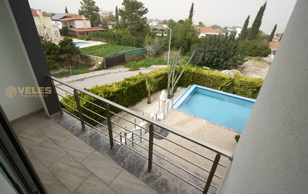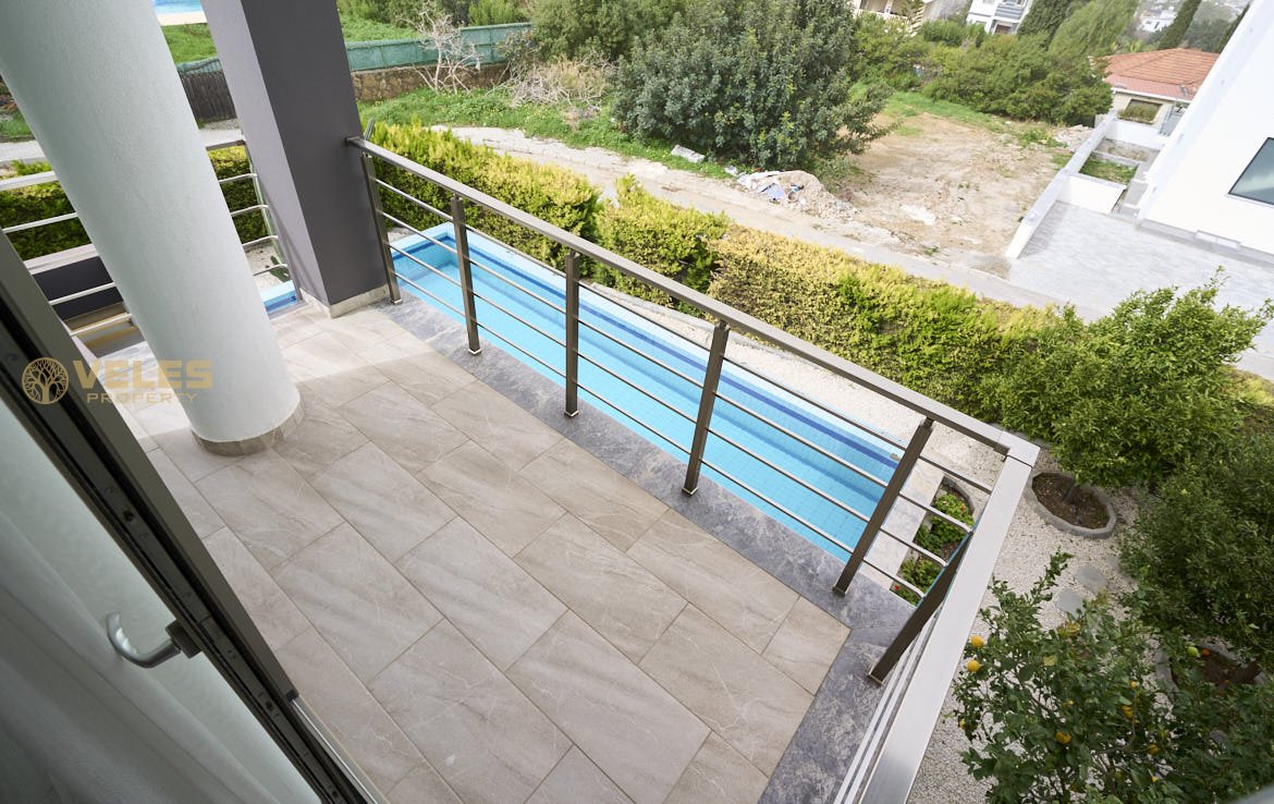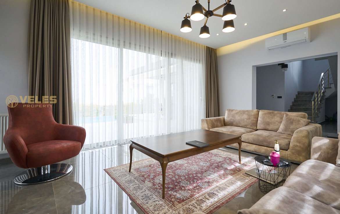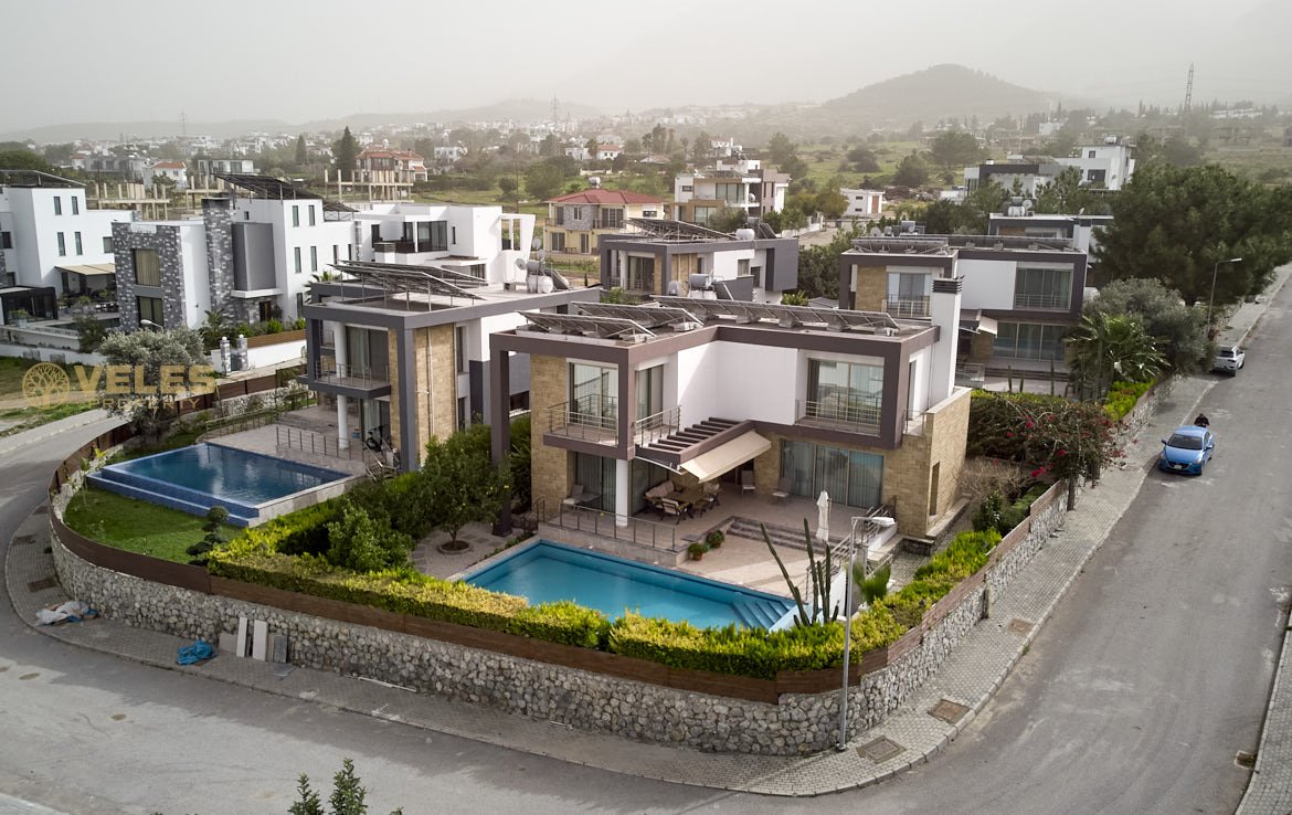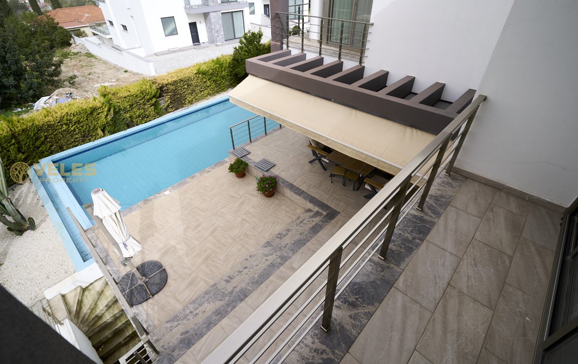 A modern 3+1 villa with a private pool is for sale in the prestigious area of Çatalköy, Kyrenia (North Cyprus). The house is located on an elevated position and offers panoramic views of the Mediterranean Sea and the mountains. The total living area is 220 m², and the 600 m² plot features a well-maintained garden and relaxation area.