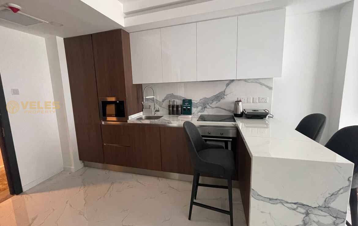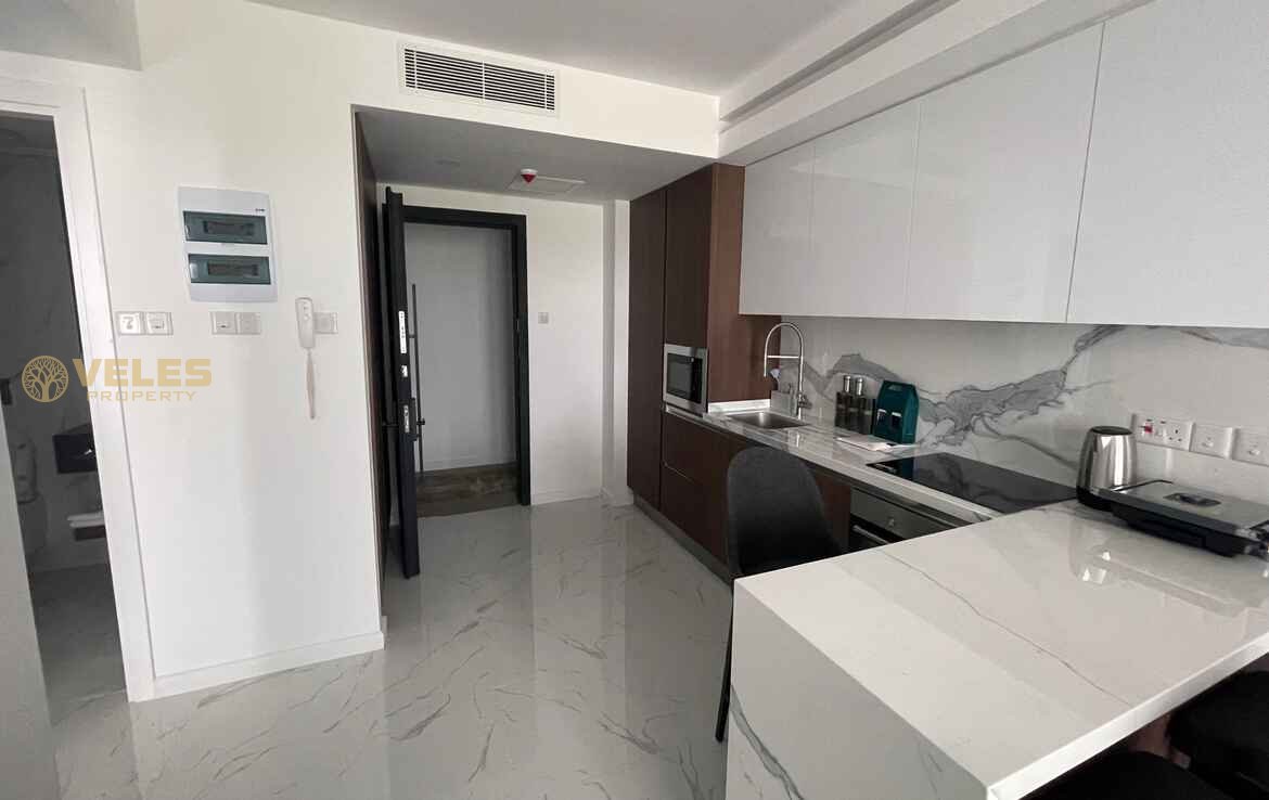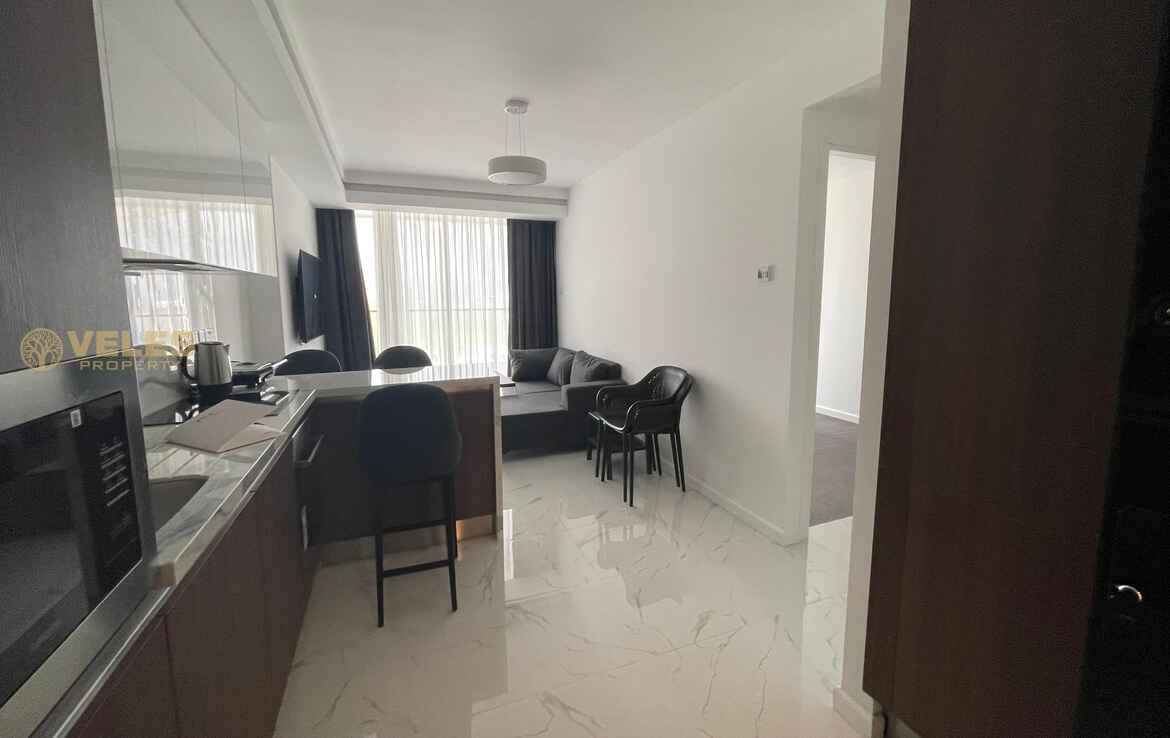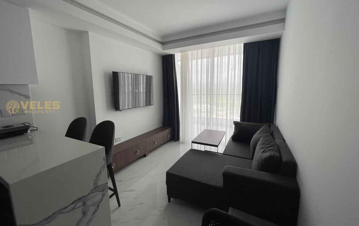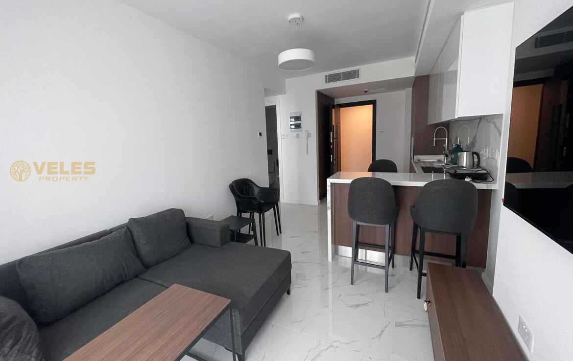 This stylish 1+1 apartment (74 m²) features a modern layout and comes fully furnished, ready for immediate move-in or rental. A bright living space, cozy bedroom, functional kitchen, and a balcony create a comfortable seaside lifestyle. High-quality finishes enhance the overall appeal.