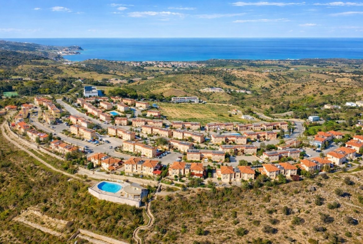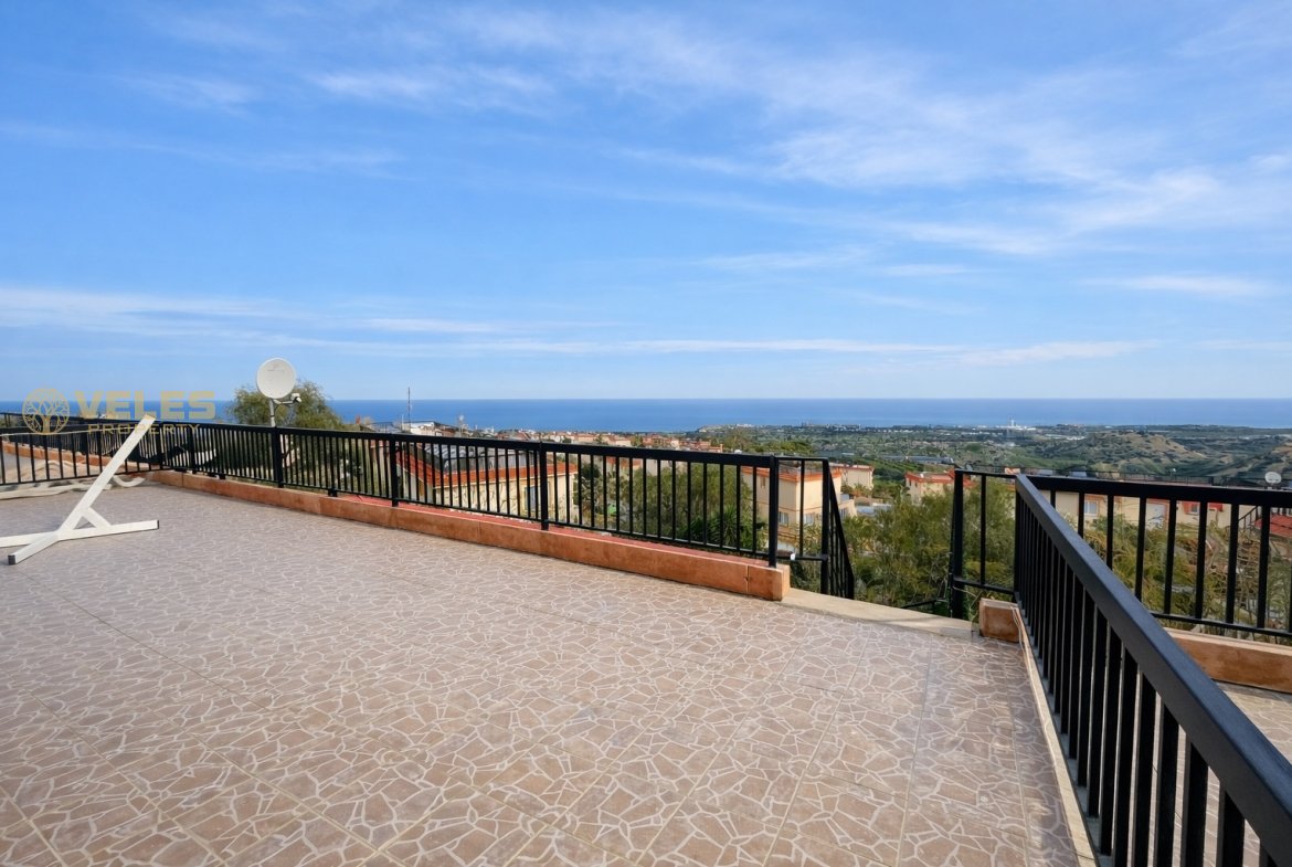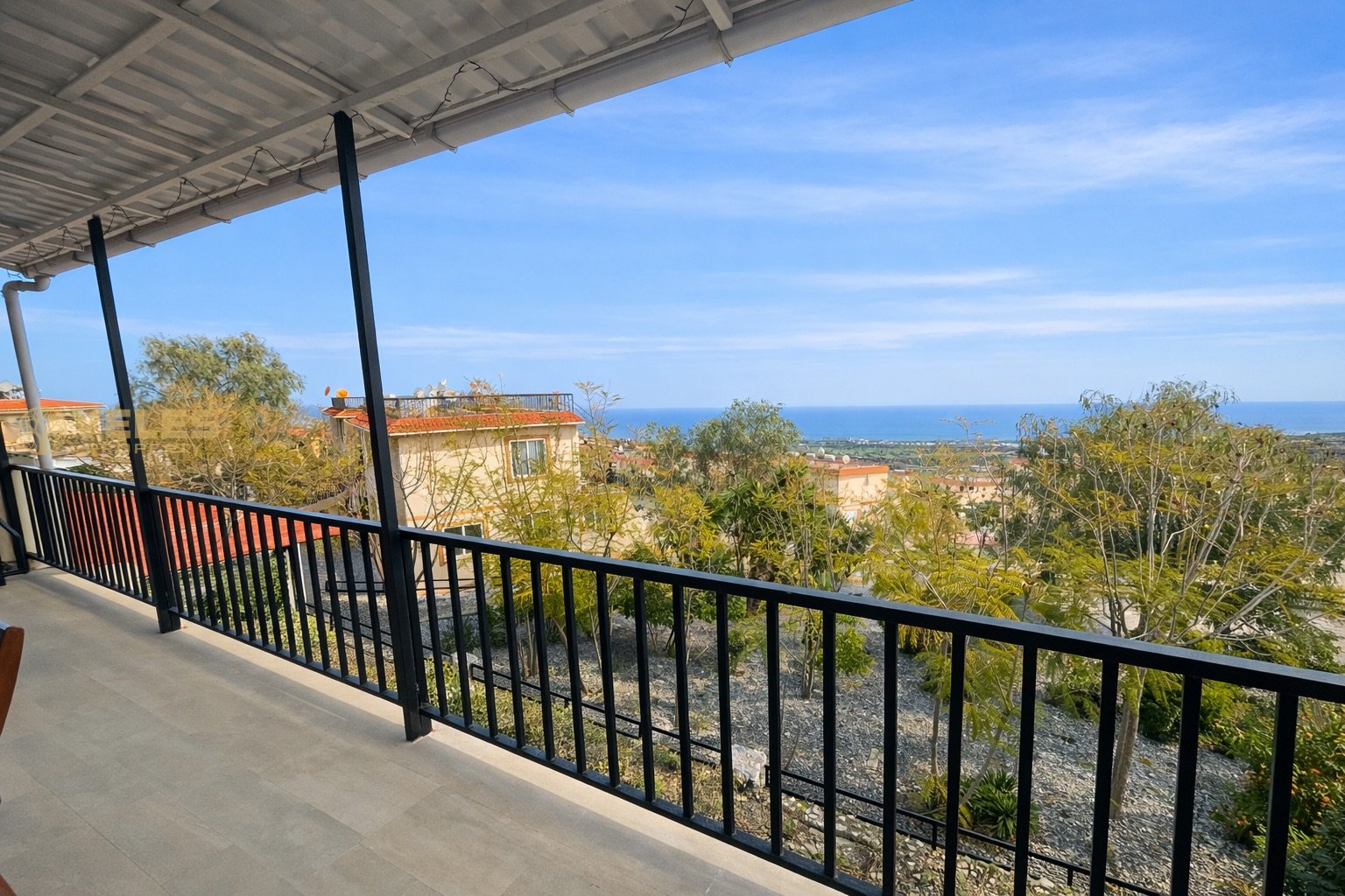 A cozy apartment with a roof terrace is located in a gated residential complex with a barrier. The windows and terrace offer a picturesque view of the Mediterranean Sea and the mountains, creating an atmosphere of comfort and tranquility.